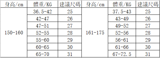 | 尺寸(cm) | 九分褲長 | 長褲褲長 | 腰圍 | 臀圍 | 腿圍 |